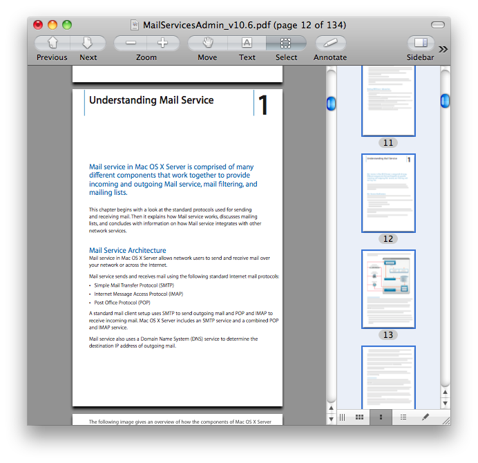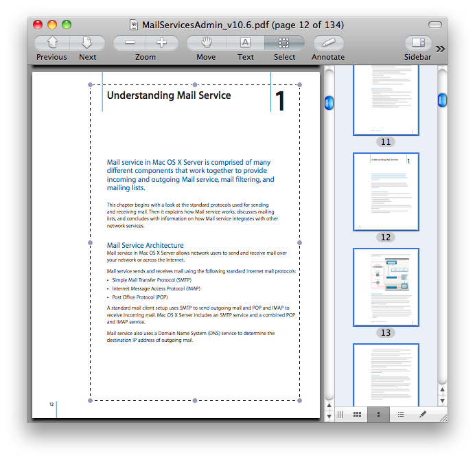 Поэтому, в этом случае полагаться на смекалку Kindle не стоит, а лучше подготовить PDF файл самостоятельно. Для этого открываем PDF в стандартном для Mac OS X просмотрщике Preview, выделяем любую страницу с списке страниц справа, и нажимаем Cmd+A. Все страницы окажутся выделенными.